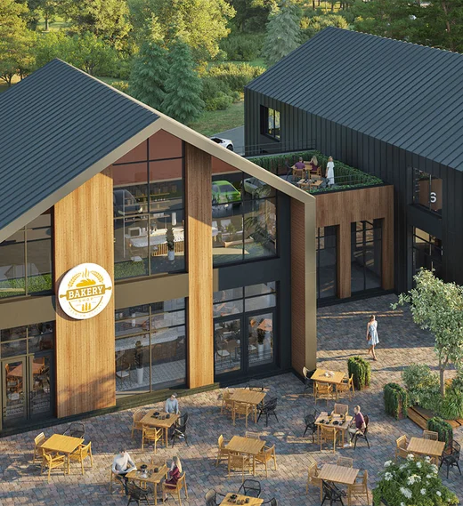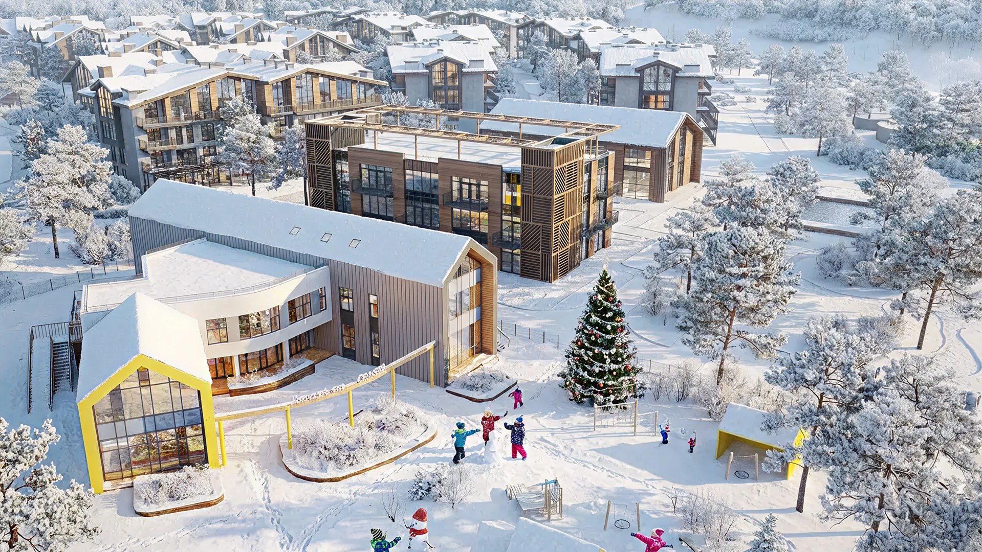 Концепция жилого комплекса насыщенна духом альпийских шале, что создает особую атмосферу тепла и уюта.
